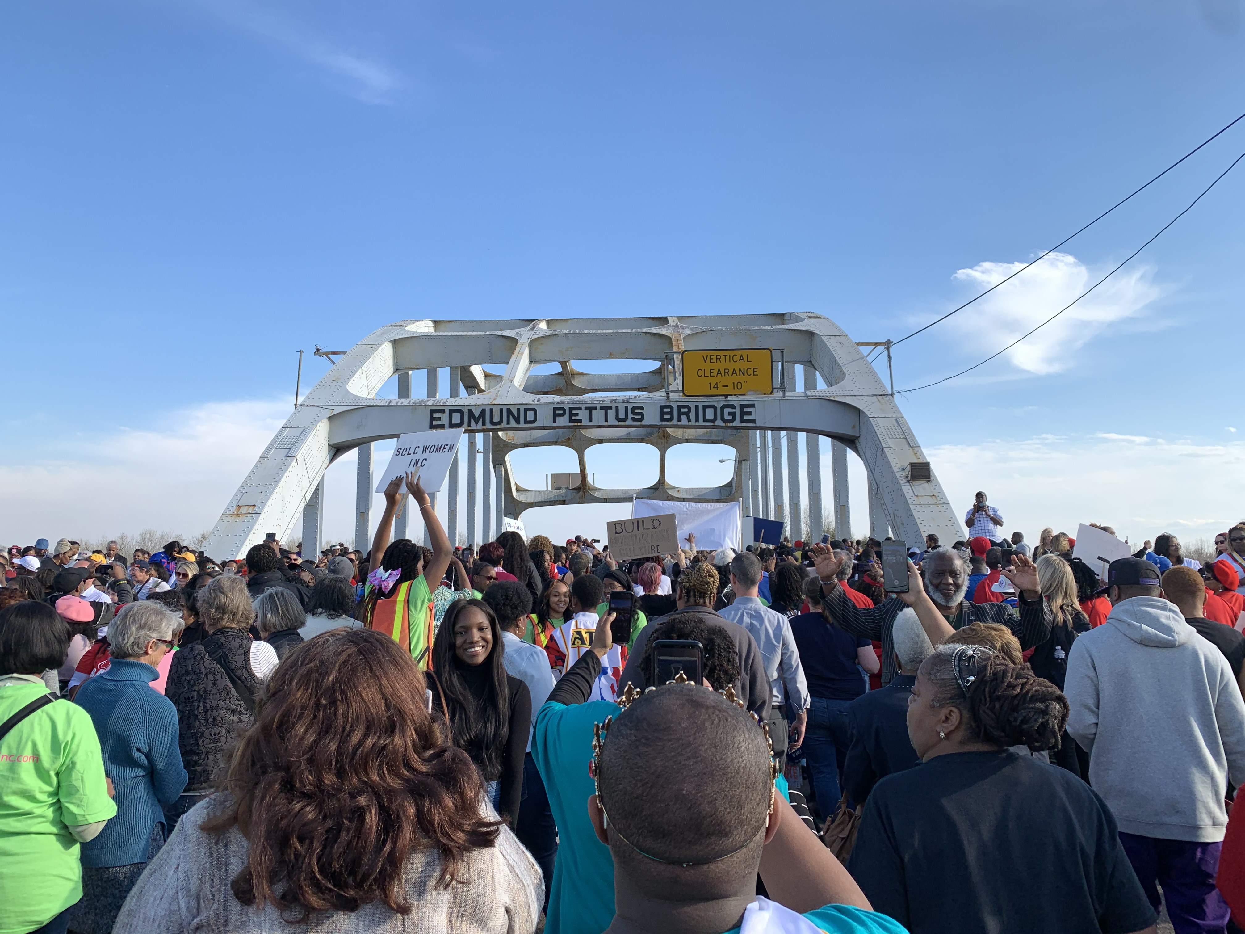 The Bridge Crossing Jubilee march reenactment commemorating the 55th anniversary of Bloody Sunday followed the original route from Brown Chapel A.M.E. Church across the Edmund Pettus Bridge.