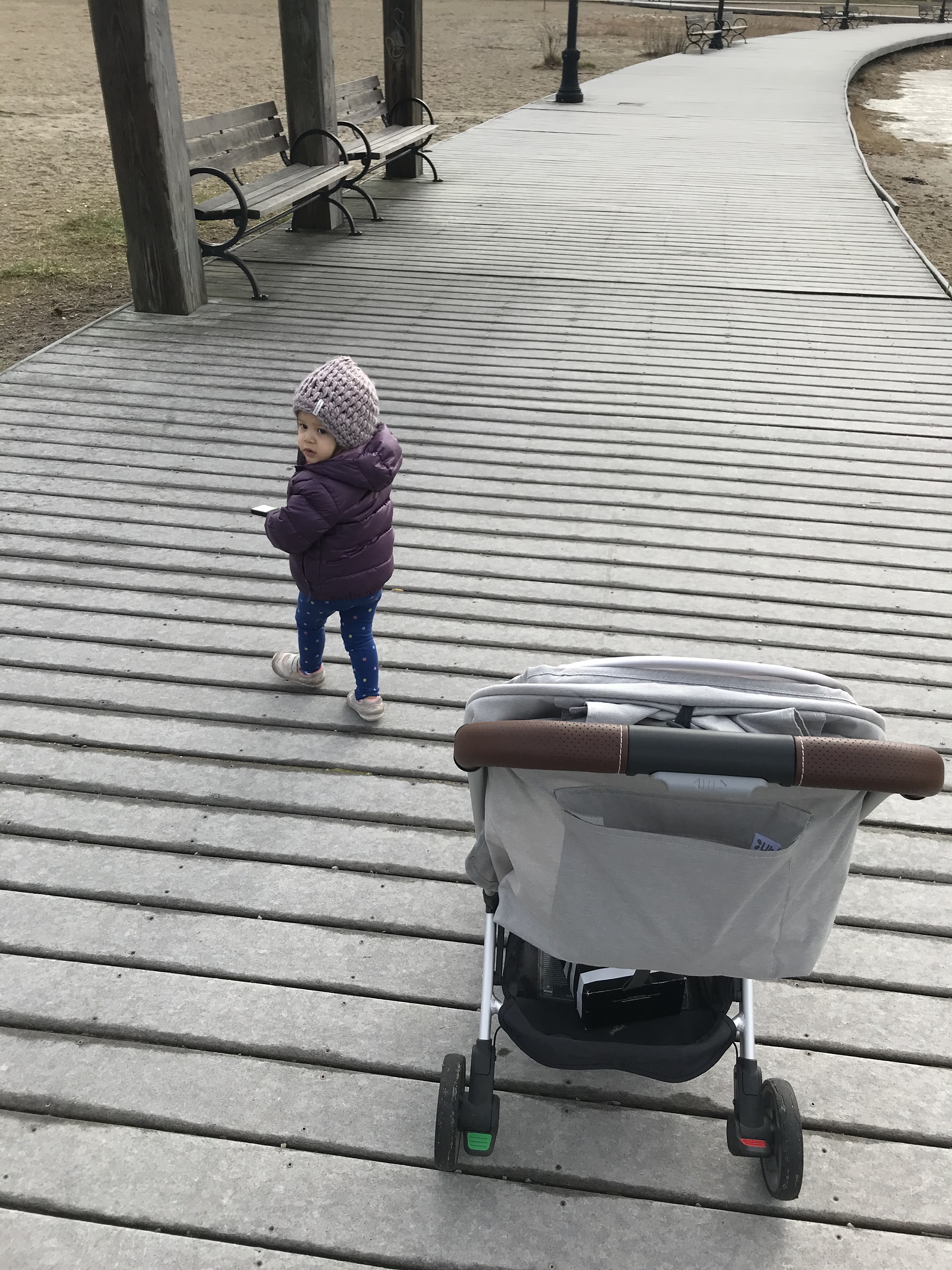 So we take a lot of walks. I throw her in a stroller or on my back, walk down to the bay, and let her run around by the water. We can get through entire classes or recorded lectures that way. But this only became possible as she grew into our new routine. Before lockdown, she got her stimulation from the blur of kids running around her at school. Because of this, in the first week at home she clung to me or wandered around listlessly. Now, however, she has learned to turn inward for excitement. She has long, animated conversations with herself. In a 75-minute class/walk in the park, she will end up speaking about as many words as my professor. In the last month, I’ve seen her go deeper into her imagination than ever before. And while I know she misses her friends, she is growing and learning as best she can.
