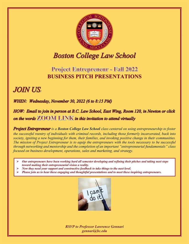 With the end of the semester upon us, my work with the Project Entrepreneur Clinic is wrapping up. For those who don’t know, Project Entrepreneur is focused on helping citizens with criminal records successfully reenter society and supplying them with a general knowledge of business law necessary for them to grow their business ventures. I wrote more about it in an earlier post here.