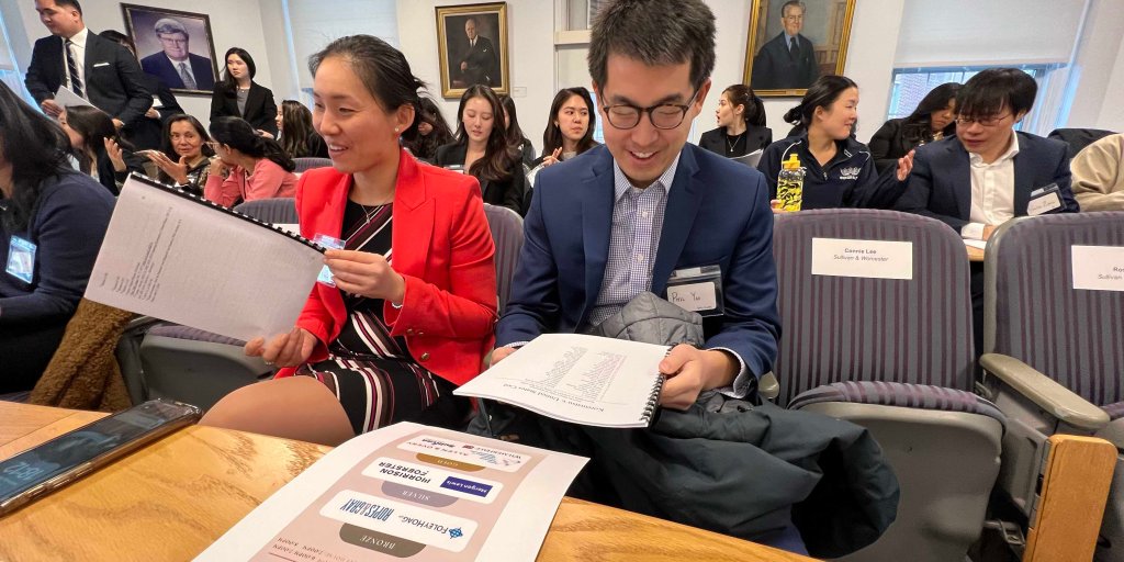 We did hit a few bumps in the road. Due to everyone’s conflicting schedules, it was difficult to find a time that worked for rehearsals. We did our best to work around this by doing a read-through of the script over Zoom, and scheduling two in-person sessions where most people could make it so that we could go over stage directions. We changed things up slightly role-wise between the first and second rehearsals, which created a bit of confusion. We were also worried about attorneys not being able to make the re-enactment due to last-minute changes in their schedules, or finding enough firm sponsorships. Despite all of these challenges, we managed to get everything in order and fundraise around $2900 for this event. We even had ten firms represented at the networking session, with over fifteen AAPI-identifying attorneys attending.