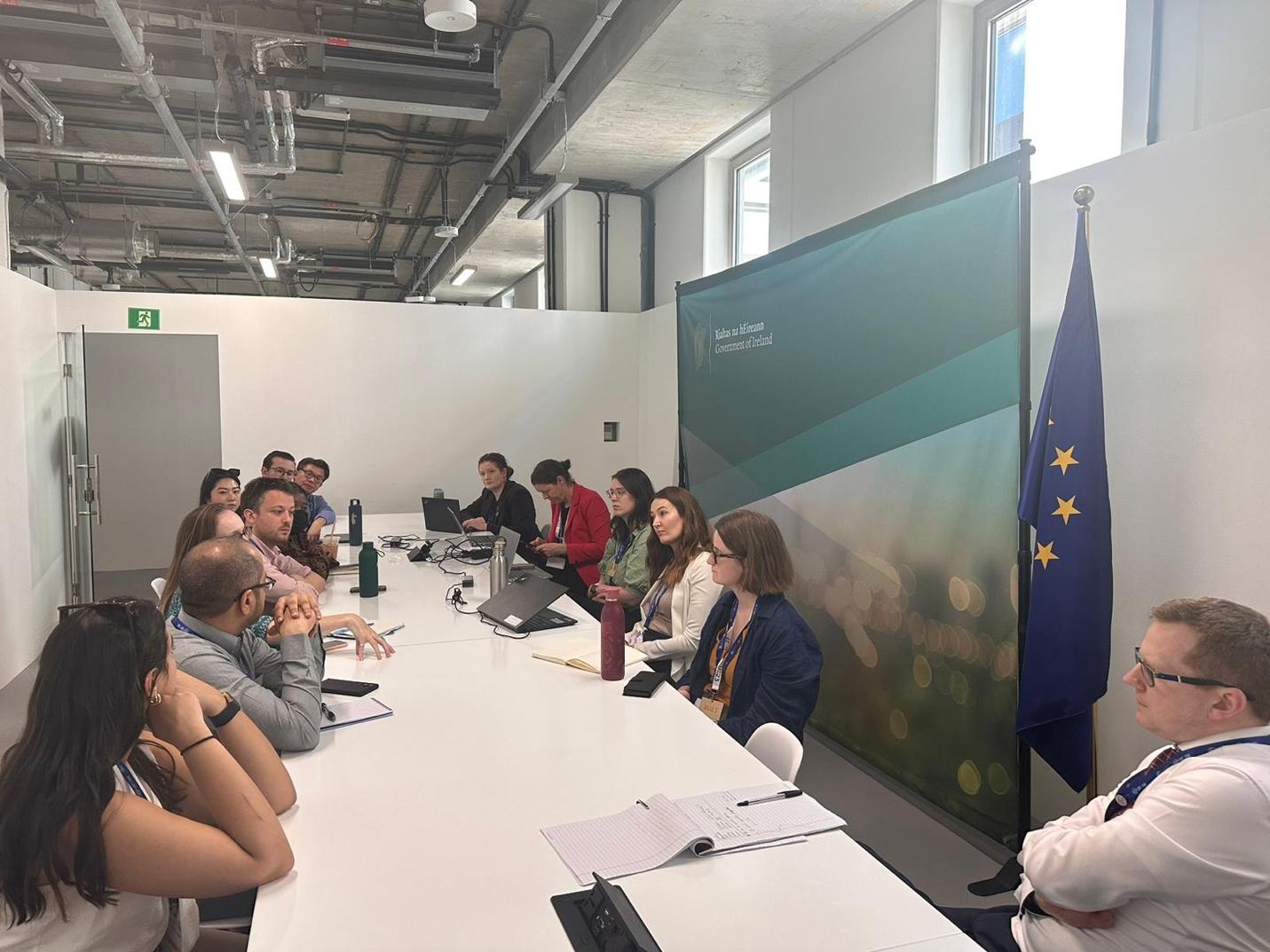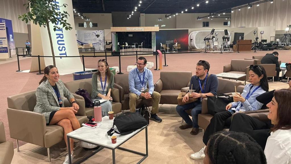 We continued our day with a meeting with Eamon Ryan, Minister for Transport and the Environment for Ireland, and the entirety of the Irish national delegation, to learn about their work pushing climate policy both within the European Union and at COP28. Ireland punches far above its weight at COP, and their team of policy experts and attorneys were incredibly generous in their candor and willingness to share their firsthand experiences so far and predictions about what comes next on global climate policy.