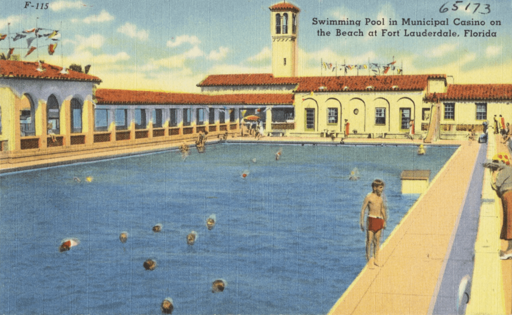 That answer would appear after a hurricane. In 1926, the Great Miami Hurricane devastated South Florida. To attract visitors, Fort Lauderdale built Casino Pool, the world’s first Olympic-sized municipal pool in 1928. Competitive swimming was just gaining popularity and indoor pools were rare, so word spread fast among Ivy League students. A swim coach at Colgate University brought his team down to train, and others followed. Eventually, the College Coaches’ Swim Forum made it an annual tradition, and by 1953, upwards of 15,000 students were making the trip to Fort Lauderdale each spring.